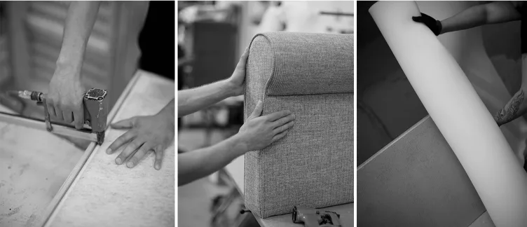 Jotta voi pyörittää tehtaan arkea ja sitä kautta luvata asiakkaalle laadukkaan ja kestävän tuotteen, on tärkeää tuntea tuotantoprosessi alusta loppuun. Olenkin edelleen viikoittain mukana tuotannossa ja autan tuotannon työntekijöitä sohvien valmistuksessa. Mieluisinta puuhaa minulle on verhoilu, mutta ompelun jätän suosiolla sitä paremmin taitaville. Kehitämme mallistoamme jatkuvasti vastaamaan asiakastarpeita. Saankin suurimman inspiraationi asiakkailtamme, joita kohtaan myyntitilanteissa. Asiakastoiveet ovat keskeisessä roolissa kun suunnittelen ja kehitän Finsoffien tuotteita.