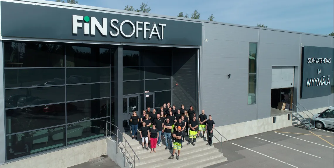 Tänä päivänä meillä on kolme omaa huonekalumyymälää pääkaupunkiseudulla sekä verkkokauppa, jossa sohviin pääsee tutustumaan vuorokauden ympäri. Finsoffien myymälät ja tehdas työllistävät lähes 40 vankkaa alan ammattilaista, joihin kuuluu puuseppiä, kankaanleikkaajia, ompelijoita, verhoilijoita, kasaajia, myyjiä, toimistotyöntekijöitä, markkinoinnin asiantuntijoita ja kuljettajia. Perheestäni yksi veljeni, kolme siskoani ja kolme lapsistani työskentelee yrityksessä. Viehtymyksestä sohviin olemme valmistaneet jo yli 200 000 sohvaa suomalaisiin koteihin.