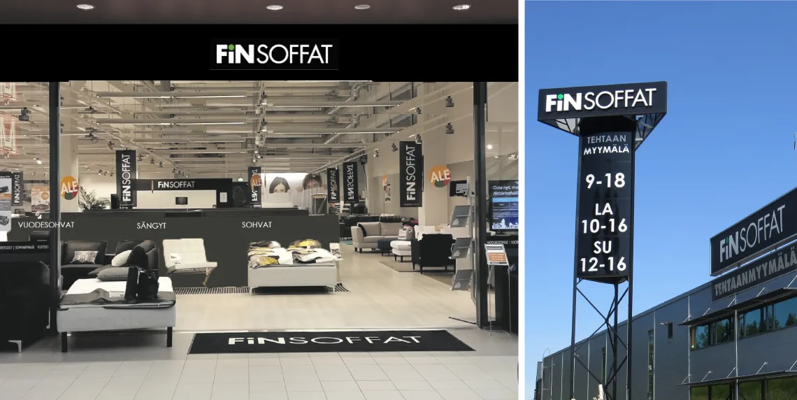 Vuonna 2020 Finsoffat vietti 50-vuotisjuhlavuotta, jota ei maailmalla vallitsevan tilanteen johdosta pystytty suuresti juhlistamaan. Kivijalkamyymälät ovat jo pitkään olleet liiketoimintamme ytimessä, sillä Finsoffien ideologiana on tarjota asiakkaille parasta palvelua ja laadukkaita kotimaisia tuotteita, joita voidaan räätälöidä asiakkaan toiveiden mukaisesti. Koronaviruspandemiasta huolimatta henkilökohtainen palvelu on korostunut entisestään, ja yrityksemme liikevaihto on ollut nousujohteista. Vuonna 2020 meille tarjoutui mahdollisuus laajentaa Vantaan myymälää, joka tänä päivänä käsittää 1200 m². Vantaan ja Keravan myymälöistämme olimme myyneet paljon tuotteita Helsinkiin, joten ryhdyin kartoittamaan sopivaa liiketilaa Helsingistä, jotta voisimme paremmin palvella Helsingissä asuvia asiakkaitamme. Sopiva tila löytyi Helsingin keskustasta Kalevankadulta, jossa Finsoffat Helsinki avattiin syksyllä 2021. Finsoffat Helsinki kattaa yhteensä noin 500 neliömetriä myymäläalaa sisältäen yhden Helsingin laajimmista sänkyvalikoimista.