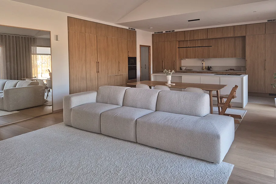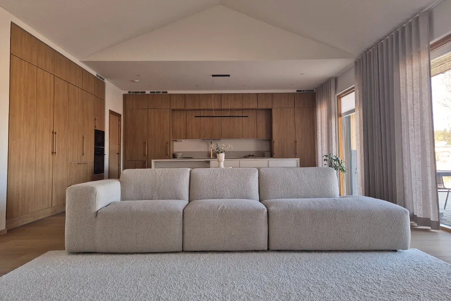 Sari asuu perheensä kanssa modernissa Espoon-omakotitalossa, joka valmistui vuonna 2024. Sarin perheen kodista välittyy skandinaavinen sisustyyli, jossa vallitsee vaaleat ja harmoniset sävyt. Uuden kodin myötä myös olohuoneeseen kaivattiin uusi sohva täydentämään sisustusta. Olohuoneeseen kaivattiin isompaa sohvaa, jossa olisi tilaa jokaiselle perheenjäsenelle. Sarin aikaisempi positiivinen kokemus Finsoffista helpotti päätöstä sohvan hankinnalle.
