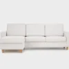 Tässä Aina-vuodekulmasohvassa jalat ovat tammen sävyiset. Kantikkaiden jalkojen korkeus on 10 cm.