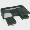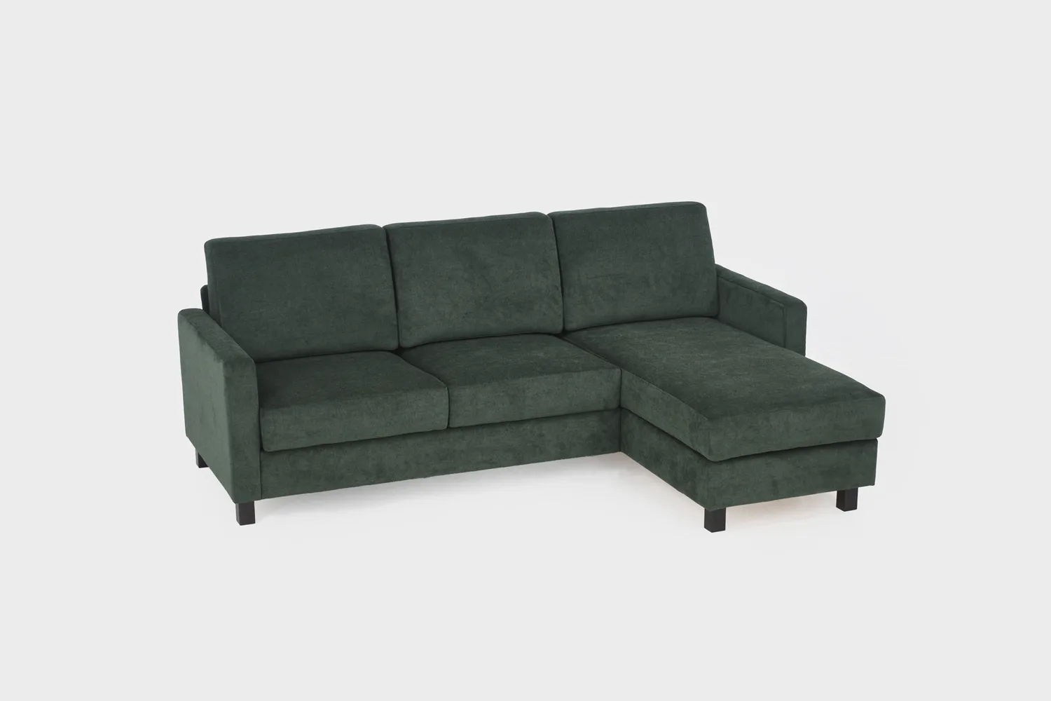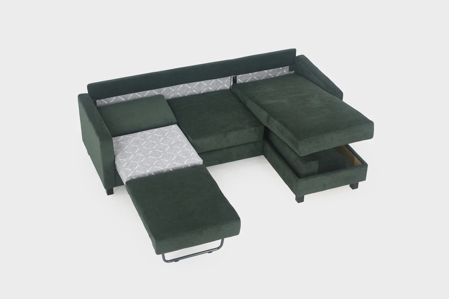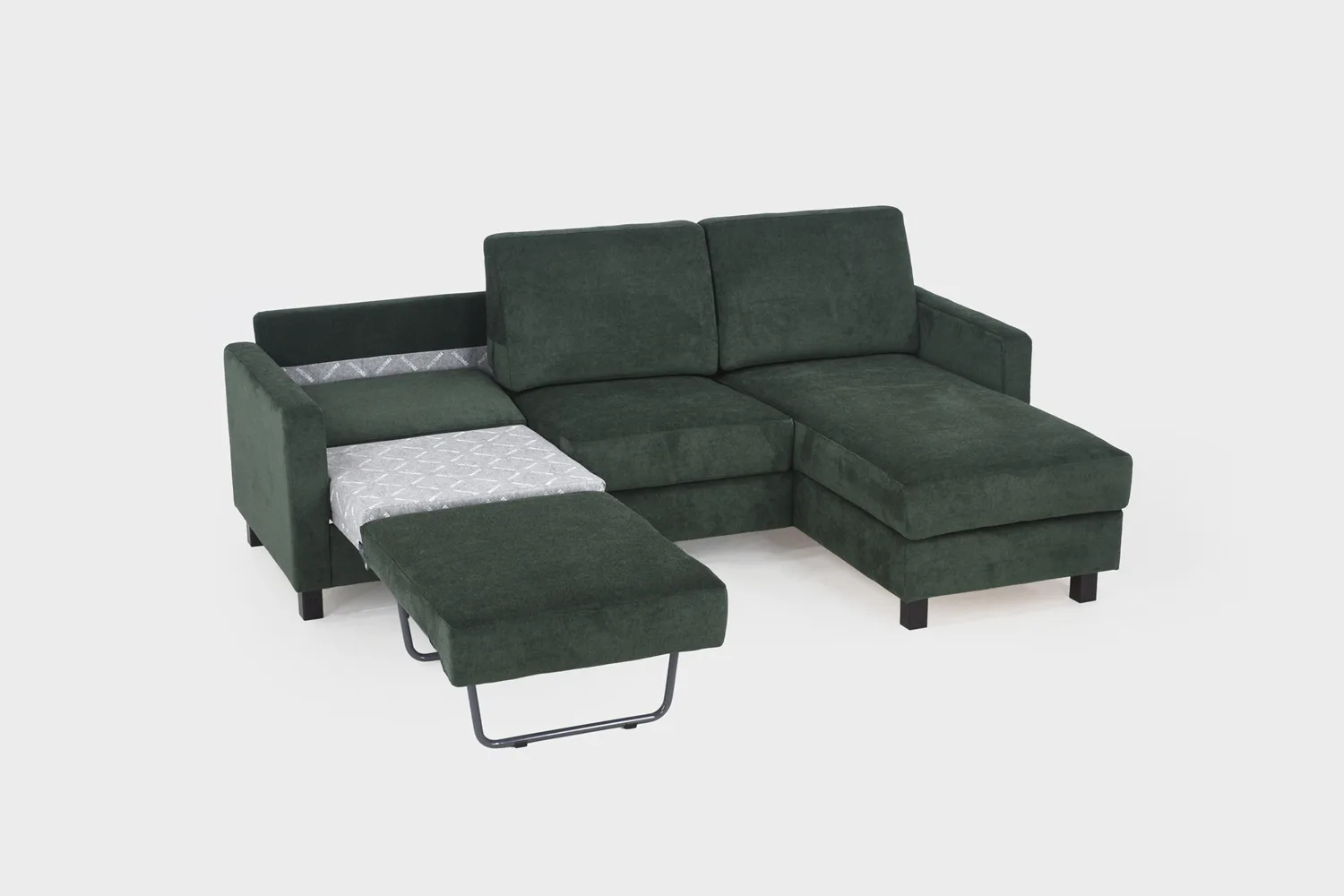 Tämä vihreä vuodesohva on verhoiltu Velvety-kankaalla, joka koostuu polyesteristä (91 %) ja puuvillasta (9 %). Tämä verhoilukangas on miellyttävän pehmeä ja helppohoitoinen jokaiseen talouteen. Kangasta on helppo pyyhkiä pelkällä vedellä tai tekstiilinpesuaineella. Hankauskesto kankaalle on jopa 200 000 Martindalea. Sohvakangas kattaa siis moninkertaisesti kotikäyttöön vaadittavan rajan.