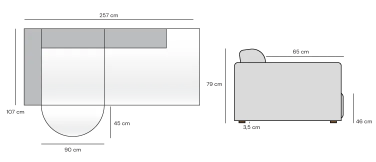 | Kätisyys | Divaanin kätisyys katsotaan edestä päin. Oikea = Divaani on edestäpäin katsottuna oikealla puolella ja sohvalla istuessa vasemmalla. |