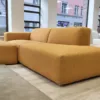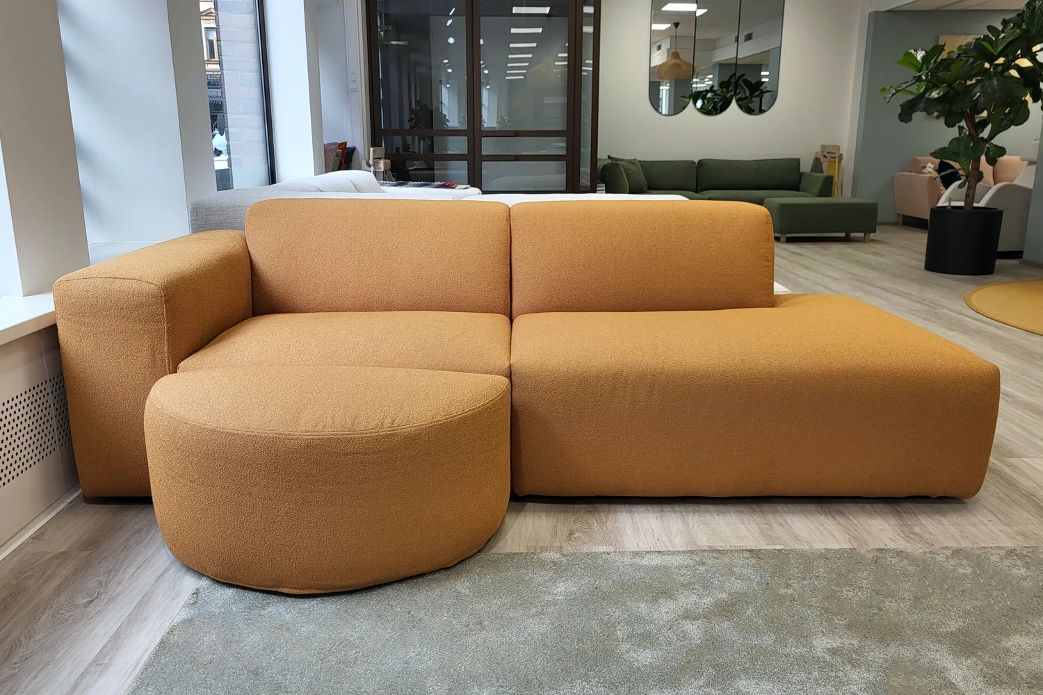 Tämä oranssi sohva ja puolipyöreä rahi muodostavat kodin tyylikkään laiskanlinnan. Sohvan leveät käsinojat, pehmeät kulmat ja huolelliset tikkaukset tuovat sisustukseen tyylikästä pohjoismaista seesteyttä. Rahia voi siirrellä tarpeen mukaisesti. Mallikappaleissa on irtoverhoilut pehmeällä Bond-kankaalla, jotka voi tarvittaessa pestä kotikoneessa.