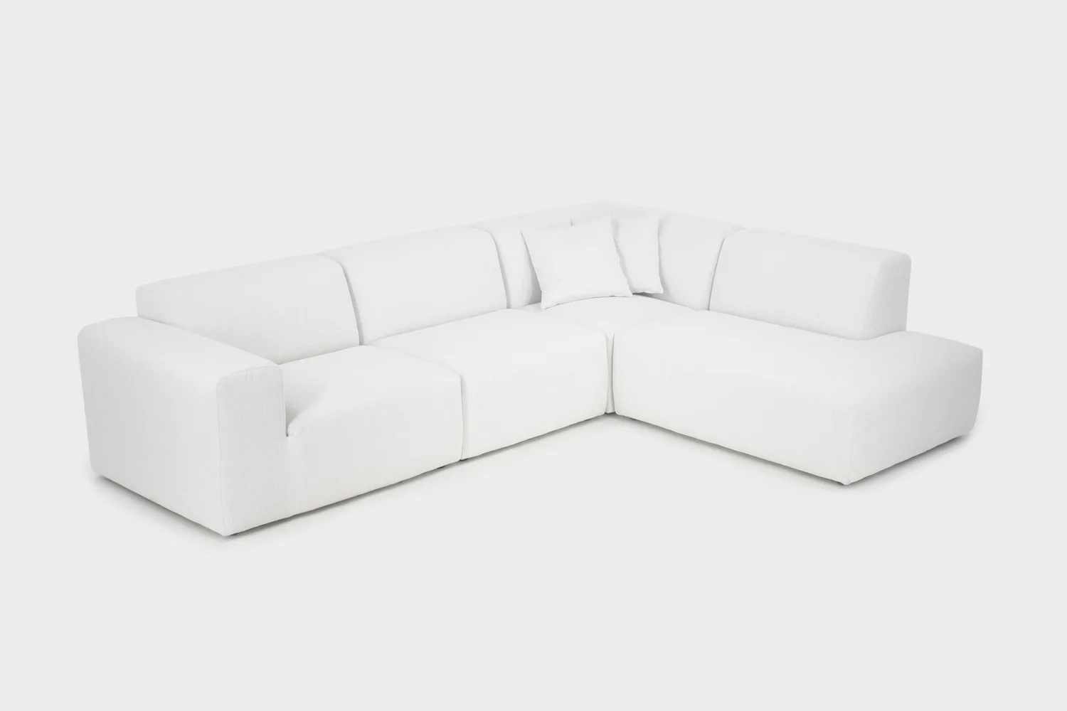 Valkoinen avokulmasohva on verhoiltu Bond-kankaalla, joka koostuu kierrätetystä polyesteristä (56 %), kierrätetystä puuvillasta (8 %) ja poylesteristä (36 %). Lauritzonin Bond-kangas on Jacquard-kudottu, kaunis ja pehmoinen buklee-kangas. Kankaan eläväpintainen struktuuri luo kauniit ja vivahteikkaat sävyt, jotka ovat hieman hohtavia. Pääosin kierrätetystä materiaalista valmistettu Bond on helppohoitoinen easygreen-kangas, joka on Oeko-Tex -, REACH- ja GRS-sertifioitu. Easygreen-kankaissa kierrätettyjen materiaalien käyttö on vähintään 50 %.