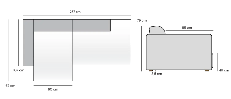 Syvyys | 107 cm / Divaaniosa 167 cm |