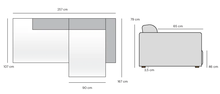 Syvyys: 107 cm / Divaaniosa 167 cm