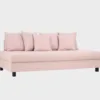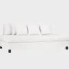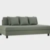 Katso sohvan 3D-kuvat, joissa vuodesohva koristetyynyjen kanssa ja säilytyslaatikko auki sekä ilman koristetyynyjä.