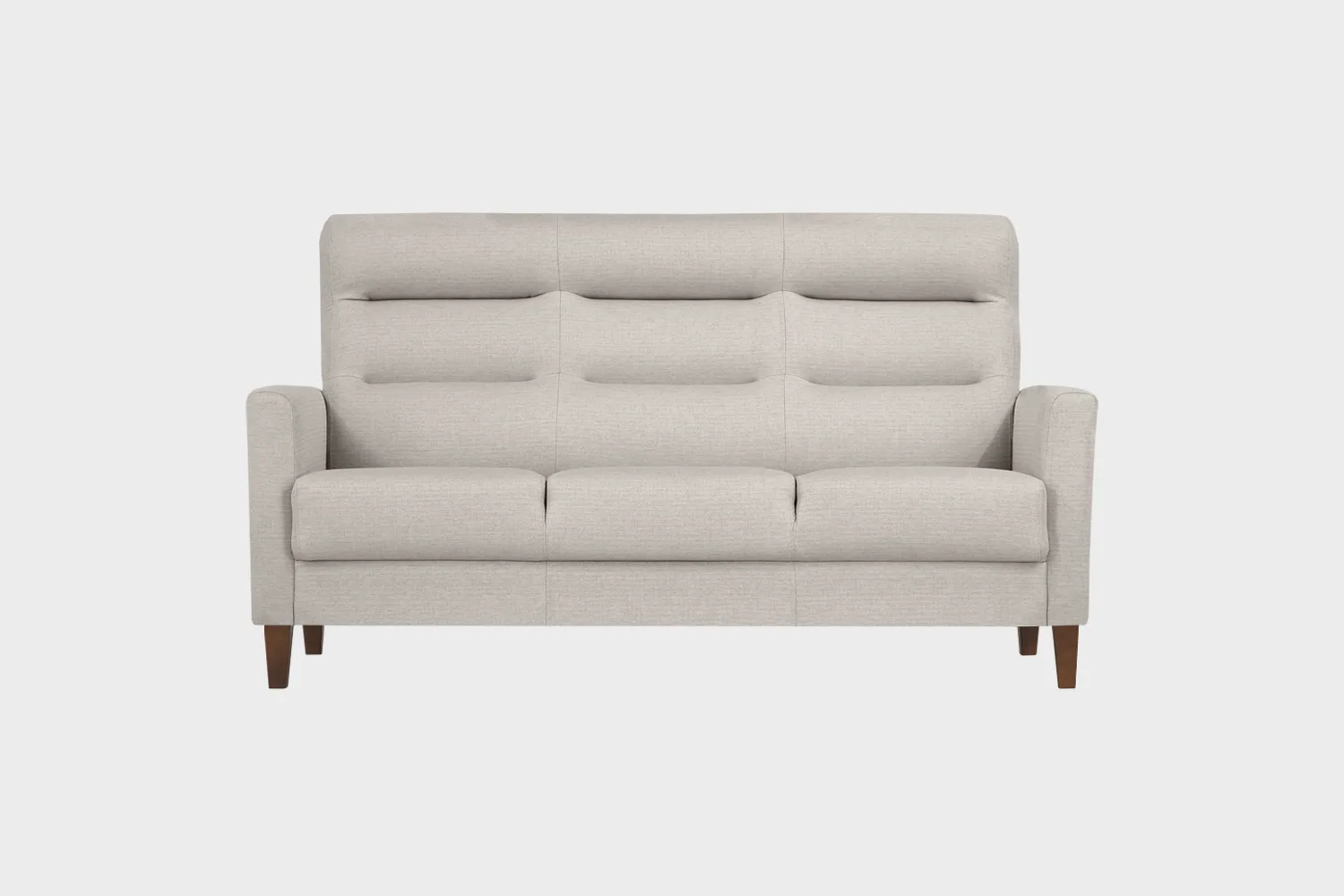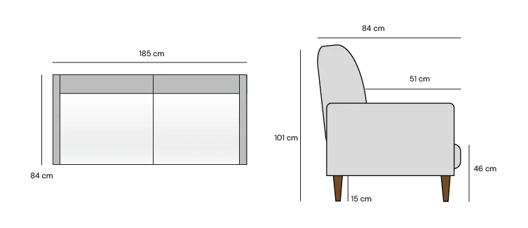 Sohvassa on klassiset puiset 15 cm korkeat jalat pähkinän värissä. Korkeat jalat tuovat sisustukseen ilmavuutta ja helpottavat myös sohvan alta siivoamista.