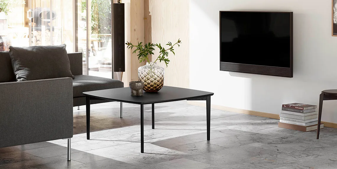 Skovby-malliston iso puinen sohvapöytä on muotokieleltään ajaton ja pelkistetty. Sohvapöydässä on pehmeästi pyöristetyt kulmat ja sirot jalat, mitkä tekevät siitä kevyen ja ilmavan.