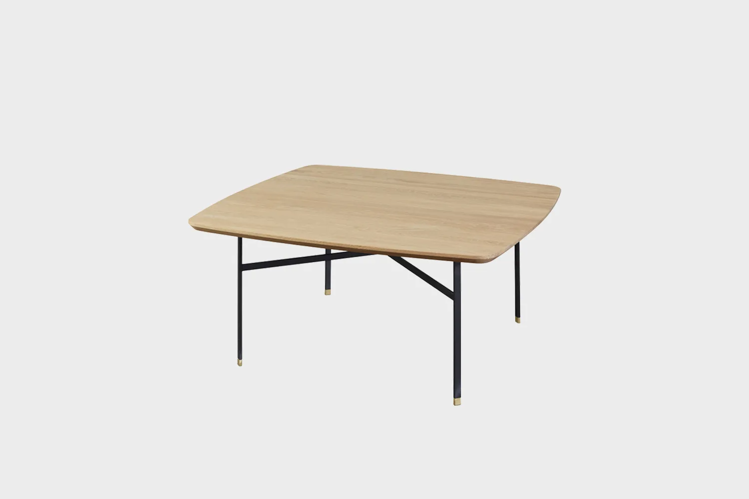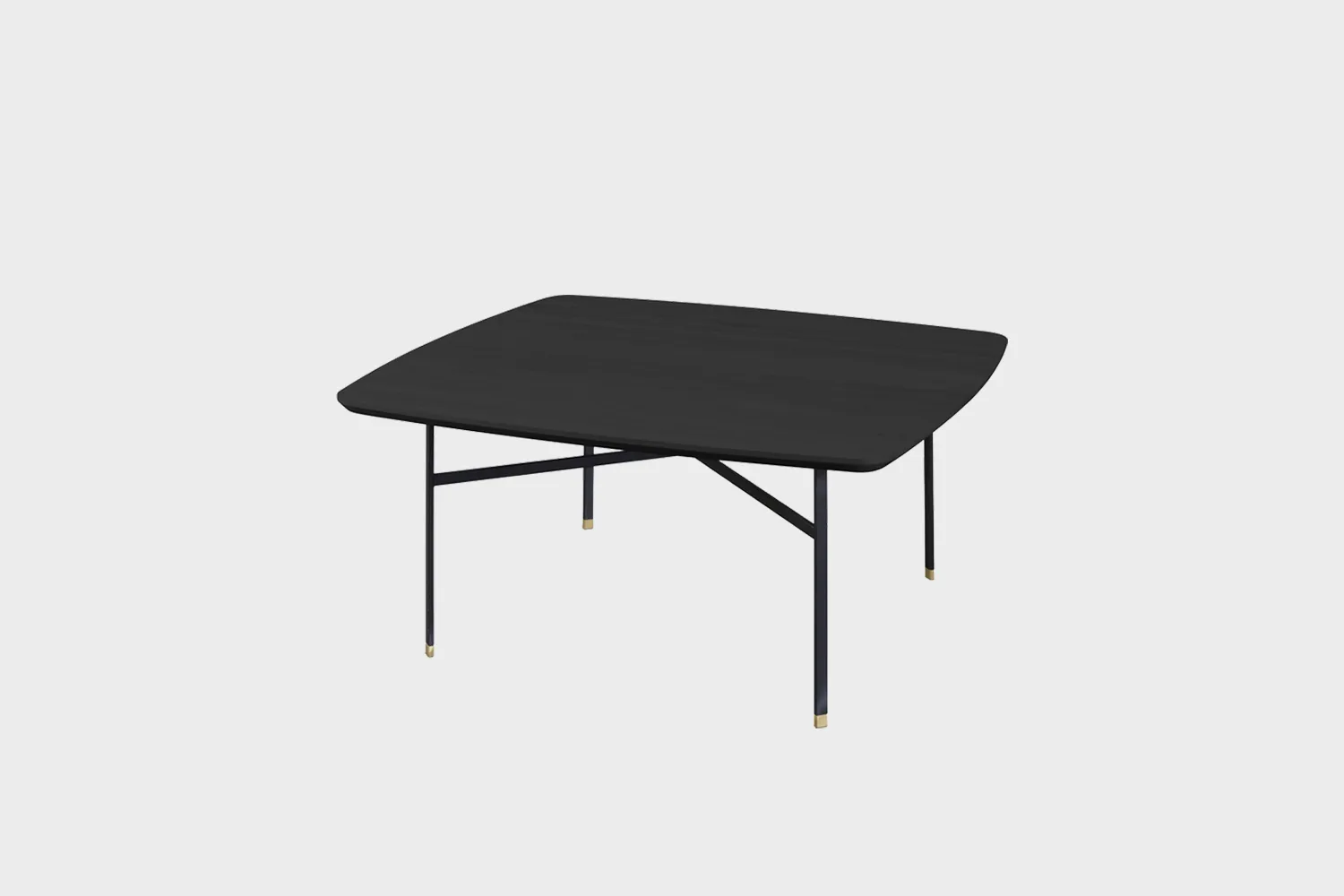 Skovby-malliston iso sohvapöytä on muotokieleltään ajaton ja pelkistetty. Sohvapöydässä on pehmeästi pyöristetyt kulmat ja mustat, ristiin menevät jalat, jotka tuovat ilmettä ja tukevuutta, kun taas siro rakenne pitää kokonaisuuden ilmavana.