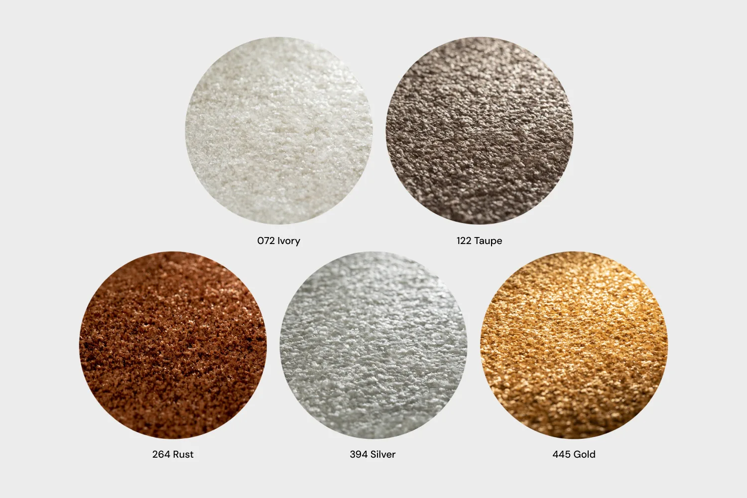 | Väri | 072 Ivory, 122 Taupe, 264 Rust, 394 Silver, 445 Gold, 493 Steel, 553 Blue, 619 Burgundy, 734 Forest, 890 Black |