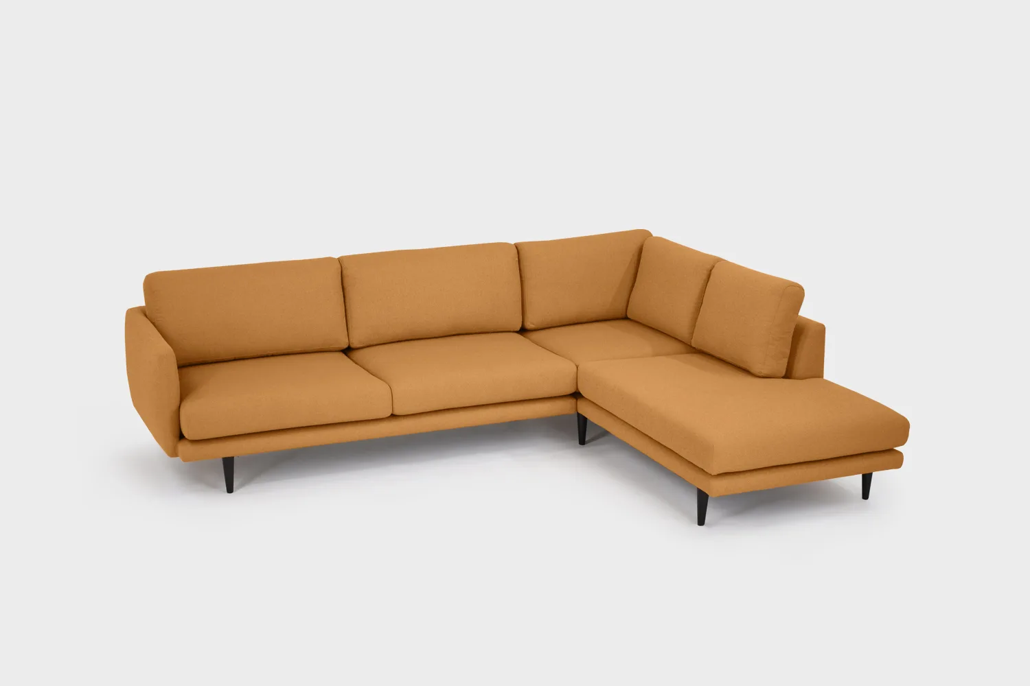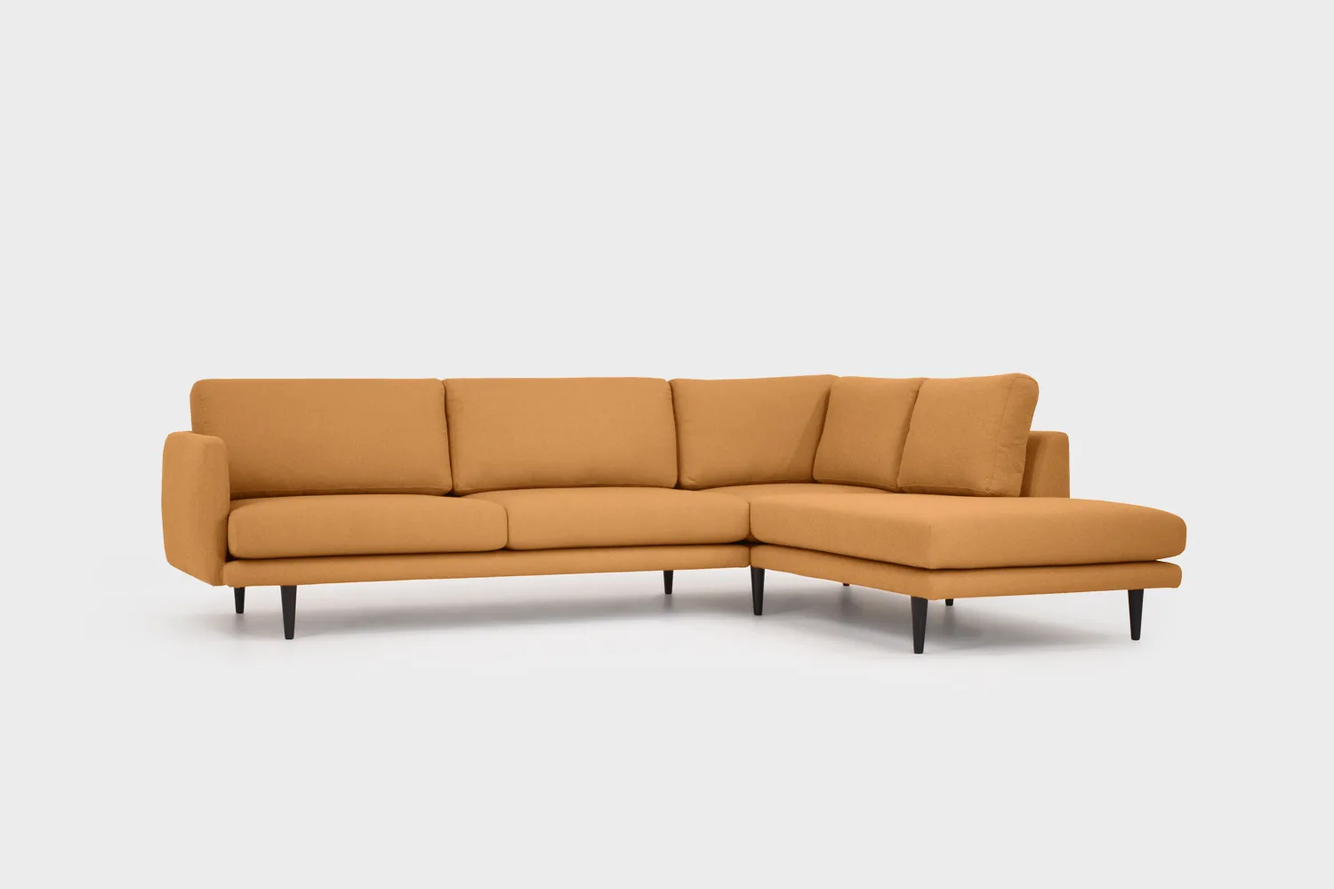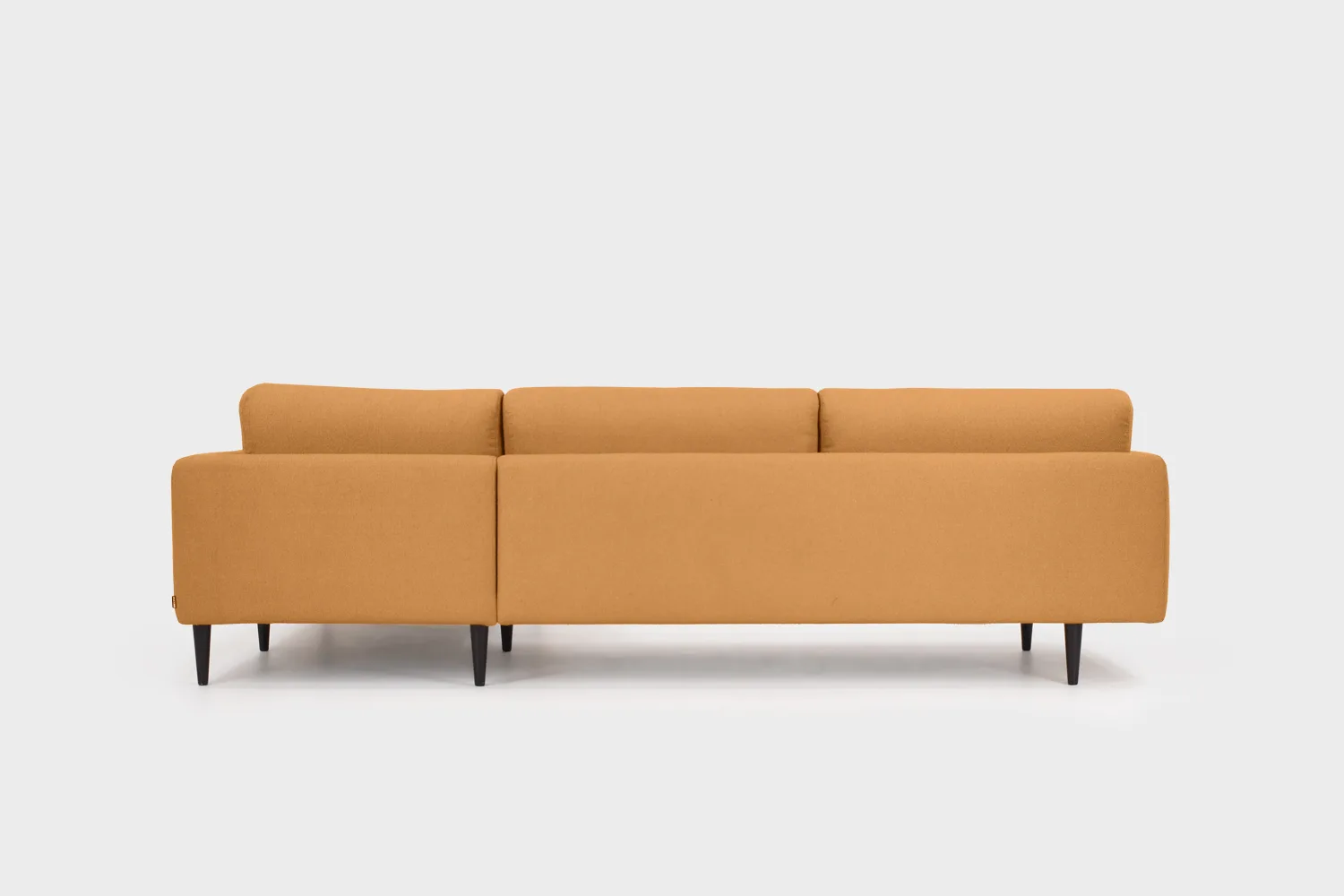 Oranssi avokulmasohva on verhoiltu helppohoitoisella Bond-kankaalla (sävy 20), joka koostuu kierrätetystä polyesteristä (56 %), kierrätetystä puuvillasta (8 %) ja poylesteristä (36 %). Lauritzonin Bond-kangas on Jacquard-kudottu, kaunis ja pehmoinen buklee-kangas. Kankaan eläväpintainen struktuuri luo kauniit ja vivahteikkaat sävyt, jotka ovat hieman hohtavia. Pääosin kierrätetystä materiaalista valmistettu Bond on helppohoitoinen easygreen-kangas, joka on Oeko-Tex -, REACH- ja GRS-sertifioitu. Easygreen-kankaissa kierrätettyjen materiaalien käyttö on vähintään 50 %. Jasmi-sohvan istuin- ja selkätyynyissä on irrotettavat ja pestävät päälliset, mikä helpottaa sohvan puhtaanapitoa.