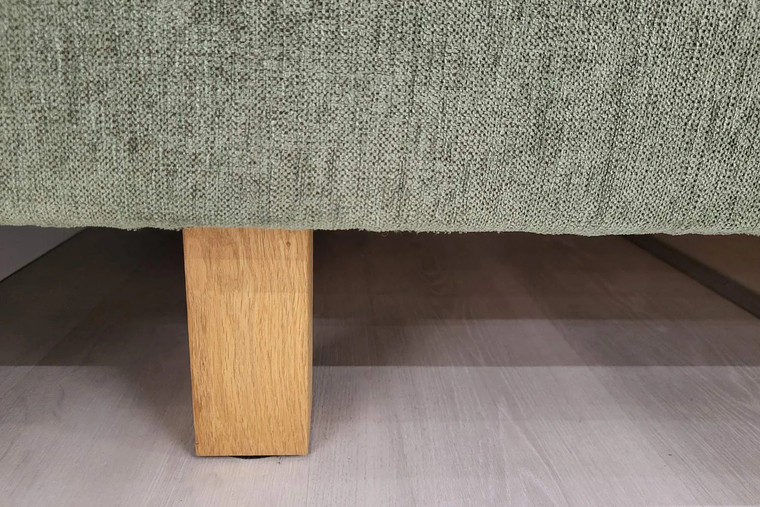 Mallikappale Savoy Royal -jenkkivuode on verhoiltu tyylikkäällä ja ihanan pehmeällä Sublim-kankaalla värissä 32 Natural Green. Sublim-kankaassa on korkea hankauskesto ja siinä on hyödynnetty kierrätyskuitua.