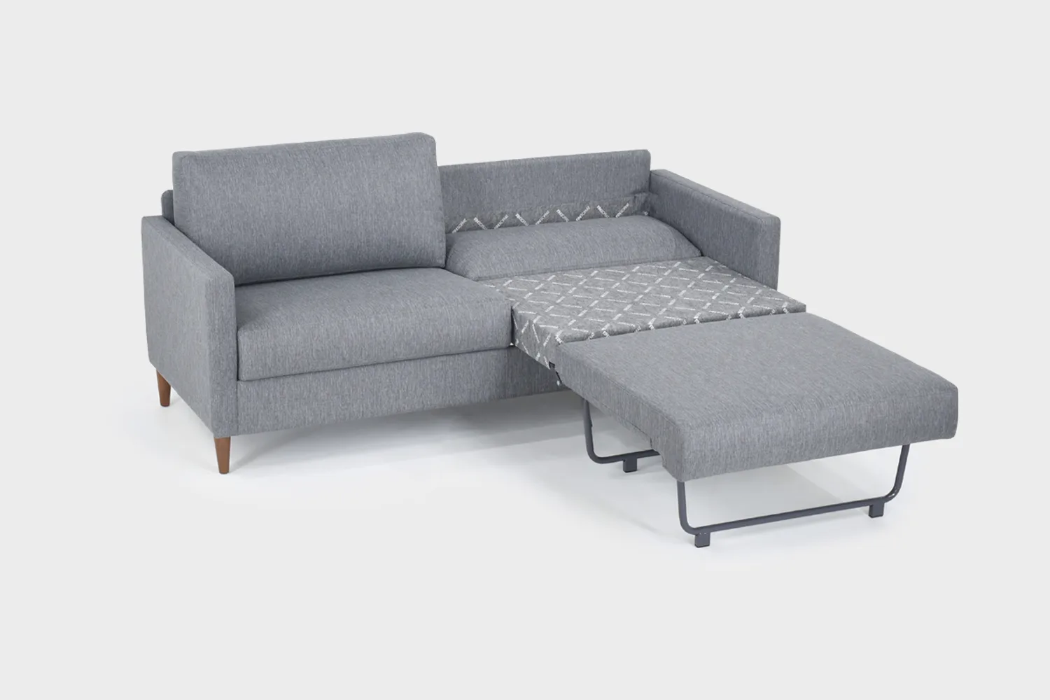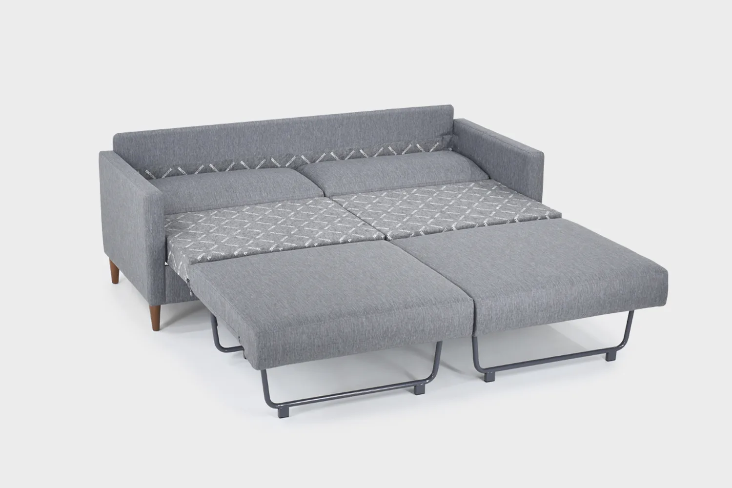 Kelo-malliston harmaa vuodesohva säilyttää käytössä ryhtinsä ja sopii siksi hyvin myös olohuoneen sohvaksi. Malliston vuodesohvissa on normaalia korkeampi jalka, joten sen alta on helppo siivota. Helppokäyttöinen jousitettu tuplamekanismi mahdollistaa tukevan vuoteen avaamisen joko yhdelle tai kahdelle nukkujalle.
