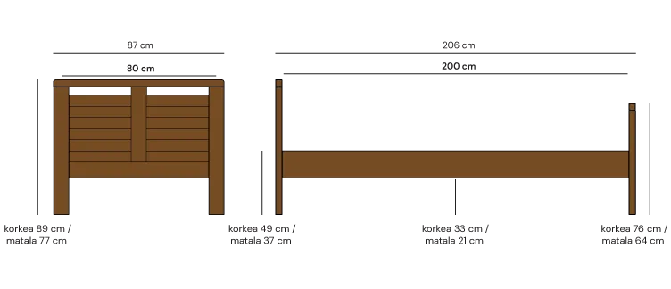 | Sängyn korkeus (ilman patjoja) | matalampi: 37 cm lattiasta sängyn yläreunaan, |