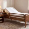 Koivunvärinen moottoroitu seniorisänky varustettuna nousutuella (lisävaruste).