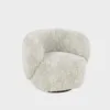 Nimensä mukaisesti Nuppu-nojatuoli kuvastaa kukintoa, joka avautuu vähitellen. Pyöreä selkänoja erottuu omana elementtinään kuin terälehti – elegantti yksityiskohta, joka tekee tuolista sekä kauniin että ainutlaatuisen. Miellyttävä istuintuntuma, lampaantaljaa muistuttava verhoilu ja selkänojan kaareva muoto muodostavat tuolista ihanan tunnelmallisen sopukan. Nuppu on suunniteltu tuomaan kotiin pehmeyttä, mukavuutta ja luonnollista harmoniaa. Sen muhkea istuin kutsuu rentoutumaan, ja pyöreälinjainen design sopii täydellisesti moderniin sisustukseen. Lähes huomaamaton pyörivä jalka lisää tuolin käyttömukavuutta ja korostaa sen ilmavaa muotoilua. Tämä trendikäs ja ihanan pörröinen nojatuoli sopii erinomaisesti olohuoneeseen, makuuhuoneeseen tai rentoon lukunurkkaukseen.