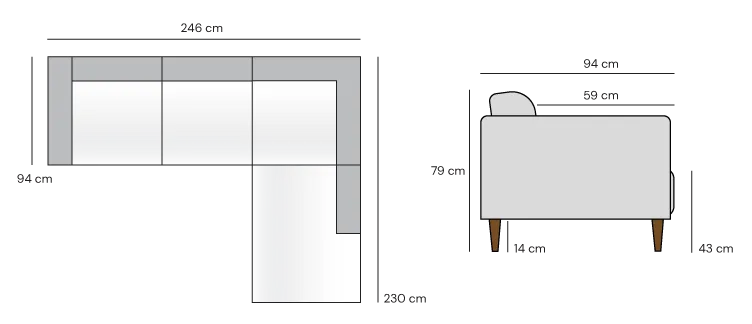 | Syvyys | 94 cm / divaaniosa 230 cm |
