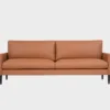Tämä 3-istuttava konjakin värinen nahkasohva on verhoiltu laadukkaalla Labrador-nahalla (sävy 1223 Swamp). Labrador on kevyesti martinoitu ja läpivärjätty semianiliininahka. Semianiliininahka on tunnultaan lähellä aniliininahkaa eli se on pehmeä, hengittävä ja luonnollinen. Semianiliininahka on pinnoitettu siten että nahan luontainen tekstuuri on näkyvissä, mutta se on samalla kulutusta hyvin kestävä materiaali.