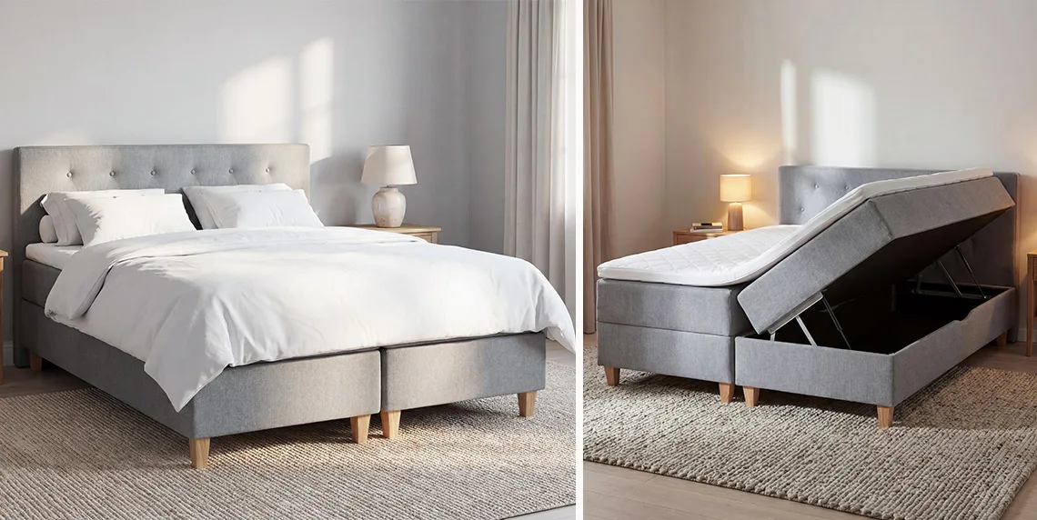 Comfy-malliston sänky säilytystilalla 160 x 200 cm tuo sekä käytännöllisyyttä että tyylikkyyttä makuuhuoneeseen. Sängyn rungossa on kätevä sivusta aukeava säilytyslaatikko, joka tuo paljon säilytystilaa makuuhuoneeseen. Comfy-sänky säilytystilalla sopii erinomaisesti mukavuutta ja käytännöllisiä ratkaisuja arvostaville nukkujille. 160×200 cm -kokoisen parisängyn kummallekin nukkujalle voi valita sopivan patjan kovuuden.