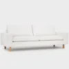 Valkoinen sohva on verhoiltu laadukkaalla ja kestävällä Alvar-kankaalla (sävy 993), joka koostuu polyesterista. Lauritzonin Alvar-kangas on Jacquard-kudottu, kaunis ja pehmoinen buklee-kangas. Tyynyjen irrotettavat ja pestävät päälliset voi pestä varovasti 30 asteessa. Alvar-verhoilukangas on Oeko-Tex- ja REACH-sertifioitu.