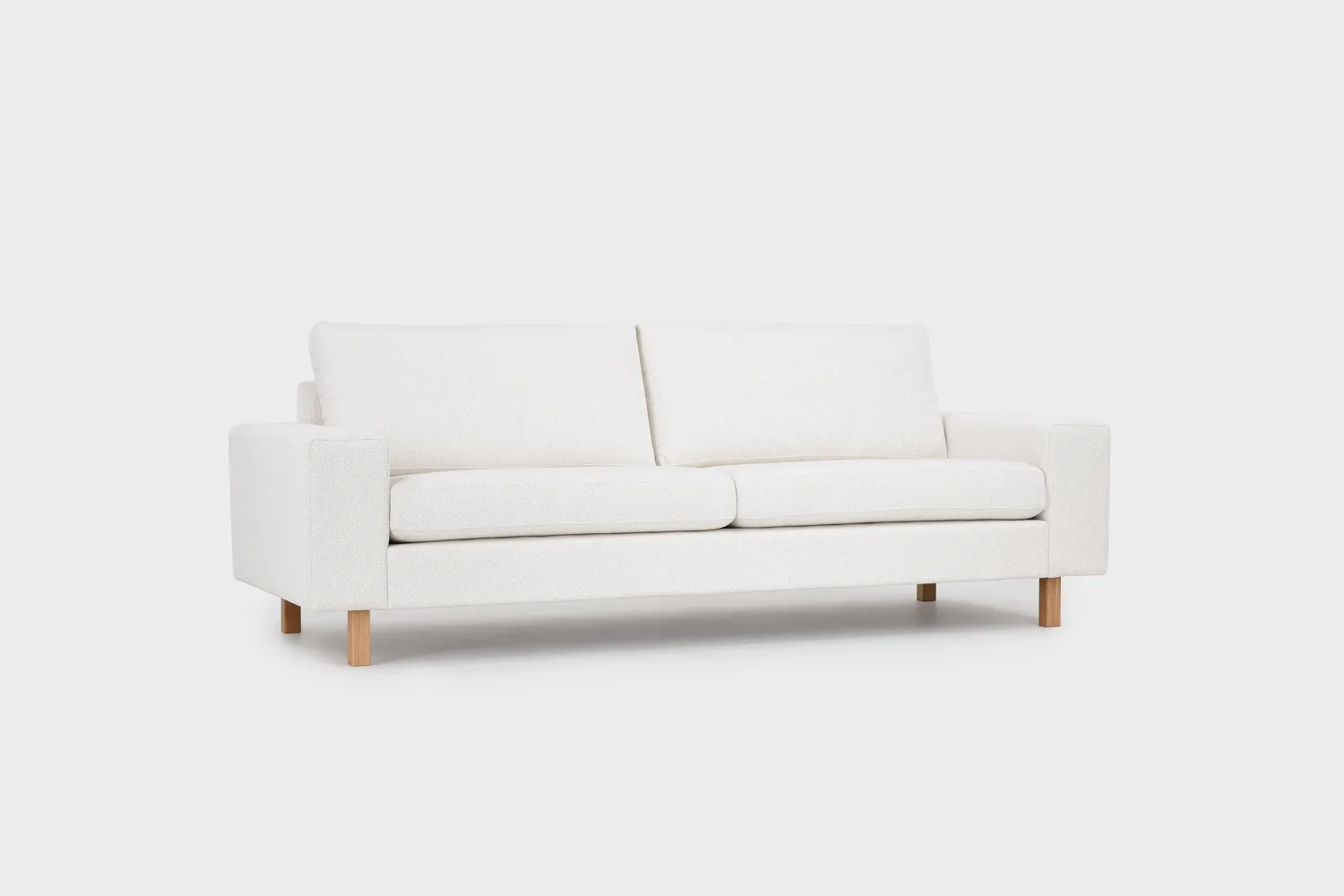 Kolmen istuttava Studio-sohva on Finsoffat-malliston ajaton klassikko. Valmistimme ensimmäisen Studio-sohvan jo vuonna 1998, ja nykypäivänäkin se on yksi suosituimmista malleistamme. Suoralinjaisen Studion muotokieli kestääkin erinomaisesti aikaa. Mallikappale on verhoiltu trendikkäällä bukleekankaalla. Istuin- ja selkätyynyissä on irrotettavat ja pestävät päälliset, mikä helpottaa sohvan puhtaanapitoa. Tyynyt voi myös kääntää tarvittaessa.