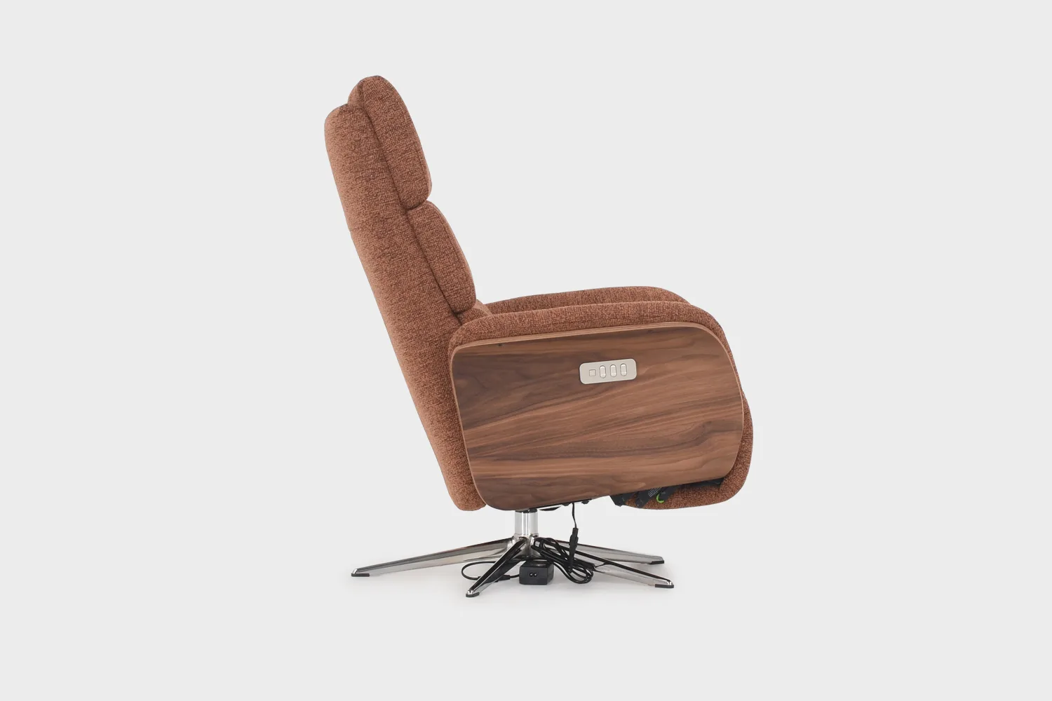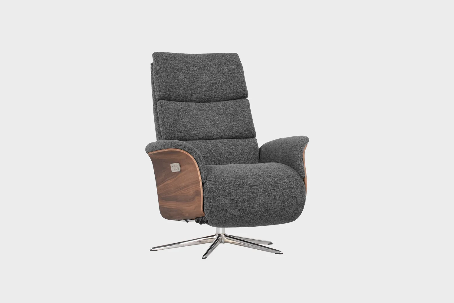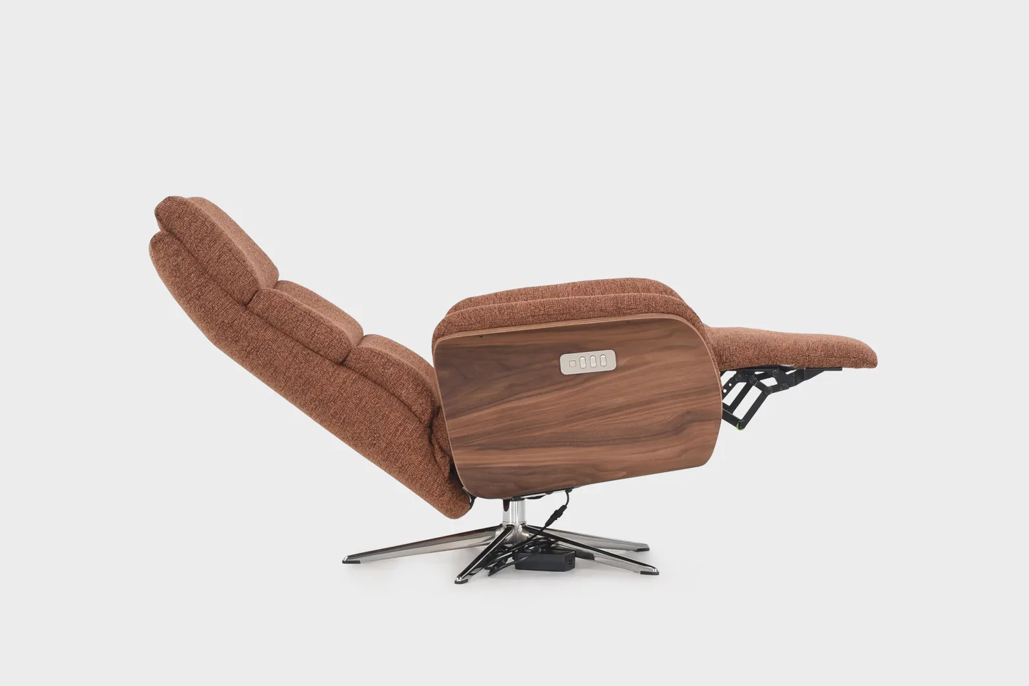 Superior 8298 lepotuoli sähkökäyttöisellä mekanismilla yhdistää ajattoman muotoilun ja vaivattoman käyttömukavuuden. Eläväpintaisella kankaalla verhoiltu pyörivä lepotuoli on tilattavissa omien mieltymysten mukaisesti – voit valita tuolin koon (S, M tai L), verhoilun ja jalan värin sekä käsinojan puusivujen sävyn. Sähköisessä mekanismituolissa on omat säätöpainikkeet jalkatuelle, selkänojalle ja niskatuelle, mikä takaa optimaalisen istuma- ja lepoasennon.