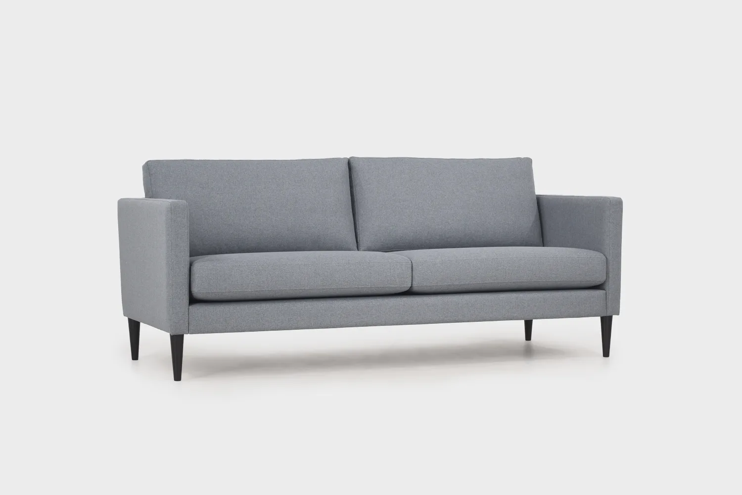 Kolmen istuttavassa Tuohi-sohvassa on kauniit 18 cm korkeat kartiojalat petsatusta koivusta. Jalkojen värinä lähes musta wenge.